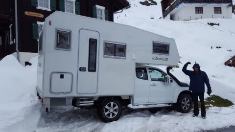 Zum Glück hat unser Gefährt auch diesen Test bestanden – und wir wissen, dass der Schnee auf dem Dach das grössere Problem darstellt als der auf der Strasse.